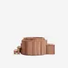 Tablettes circulaires en Red Cedar 38mm d'épaisseur / Habillage vertical en Red Cedar 38mm d'épaisseur / 1 marche encastré fixe / 1 Marche d'accès amovible