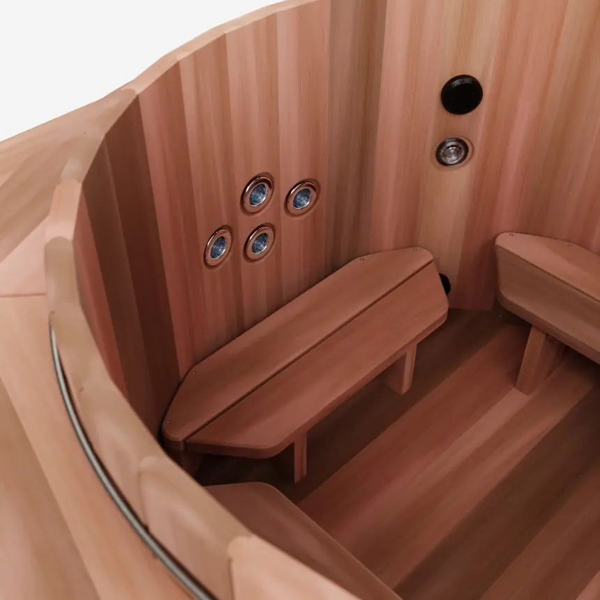 Les arômes naturels du bois ajoutent une touche apaisante à votre expérience. La température de l'eau peut être ajustée selon vos préférences, pour un confort optimal.
